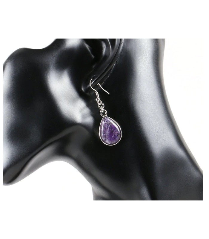 Boucles d'oreilles goutte d'eau en Améthyste